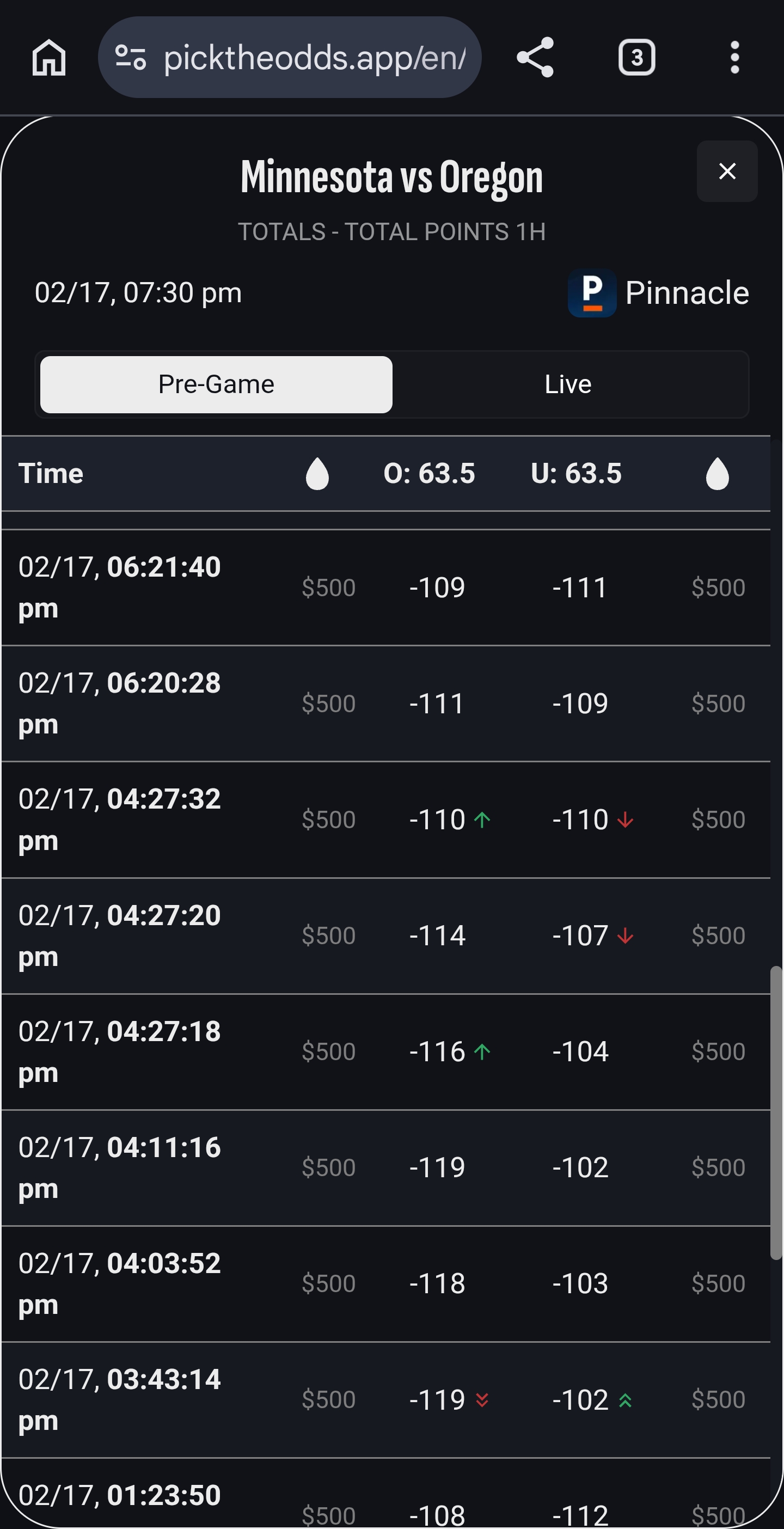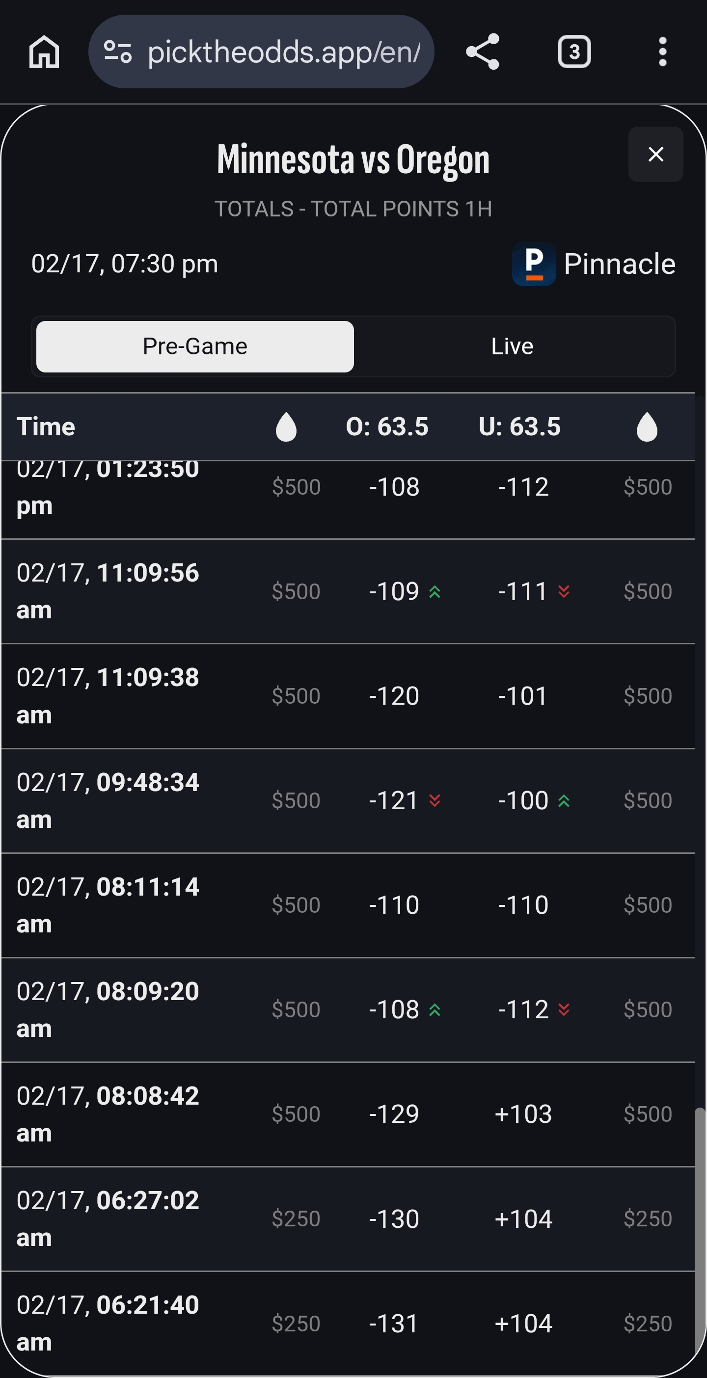 Pinnacle has lower limit than Bookmaker.
