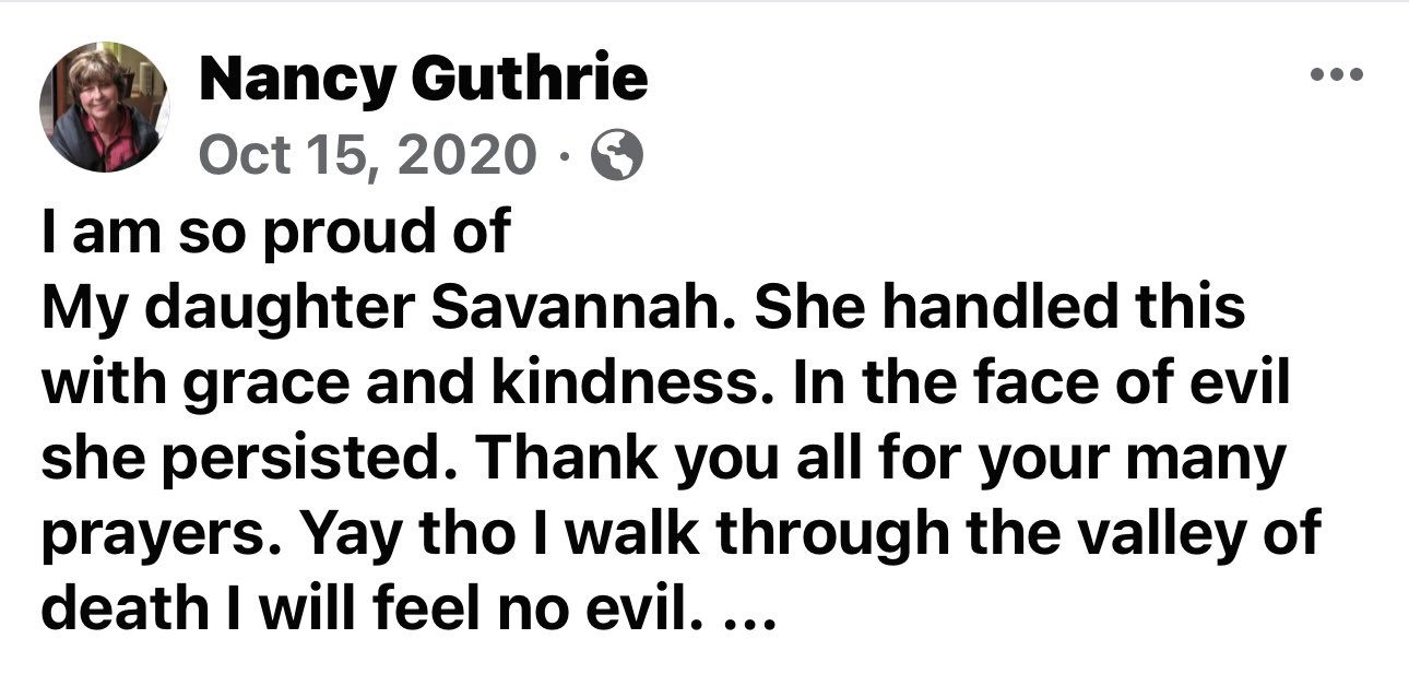 Abduction of TV Hosts Mom - Nancy Guthrie 84 year old 4 days missing blood on scene