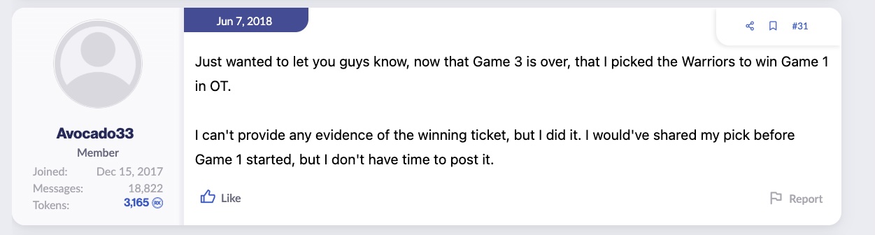 I have never seen LeBozzie/Bozo/Chimp participate in sports/gambling here at THERX.