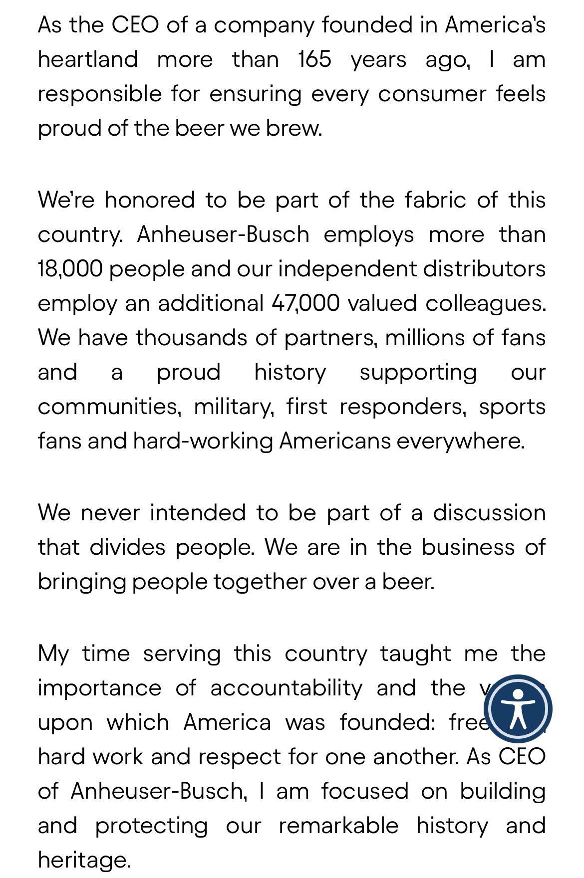 Anheuser Busch CEO Brendan Whitworth releases statement after the Dylan Mulvaney backlash.