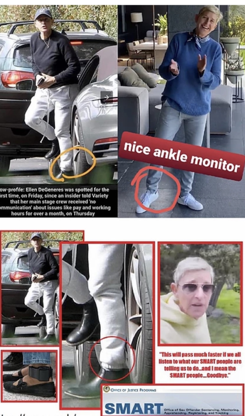Interesting how Ellen has an ankle monitor on both her left and right foot.