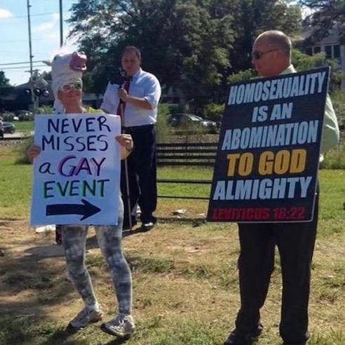 Free giant sponge dildos to all attendees (replacing the more traditional "thumbs up" hand version)