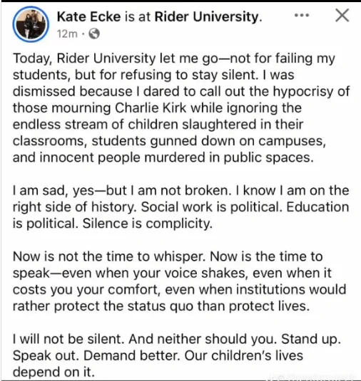 She didn't get fired because they're taking away free speech, she was fired because she's a vile, disgusting, angry and stupid POS