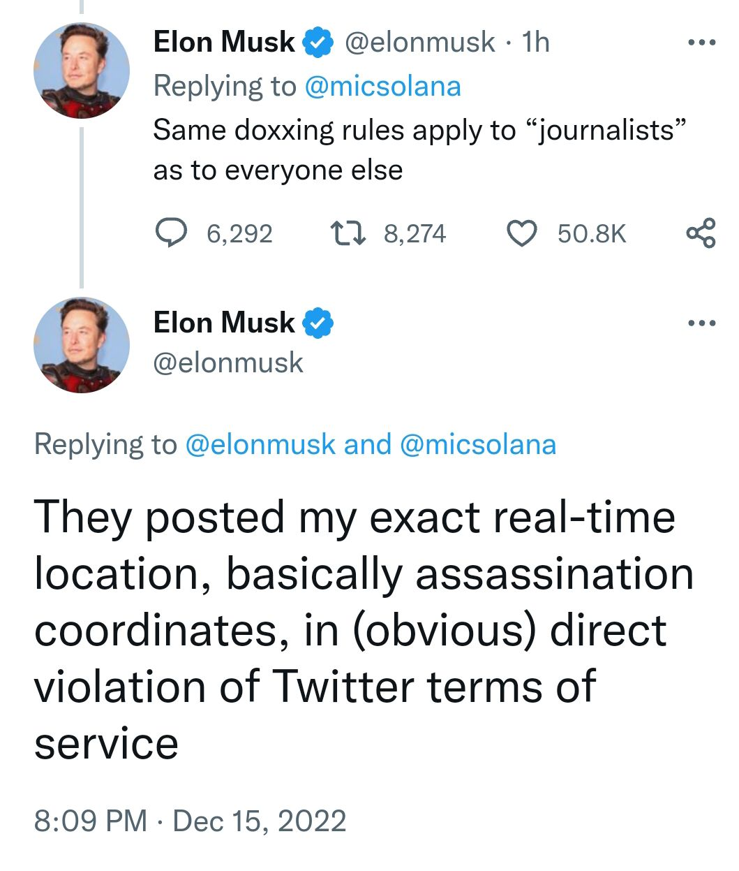 Elon literally doxxes someone in a reply to these tweets:You can't dox or threaten people on Twitter 2.0.
