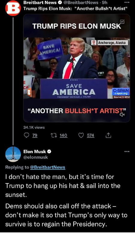 MSM have no choice but to cover this "feud" as their ratings are in the tank and Trump is the only thing that can help them, it sure doesnt hurt to feud with someone as well known as Musk either...wink wink
