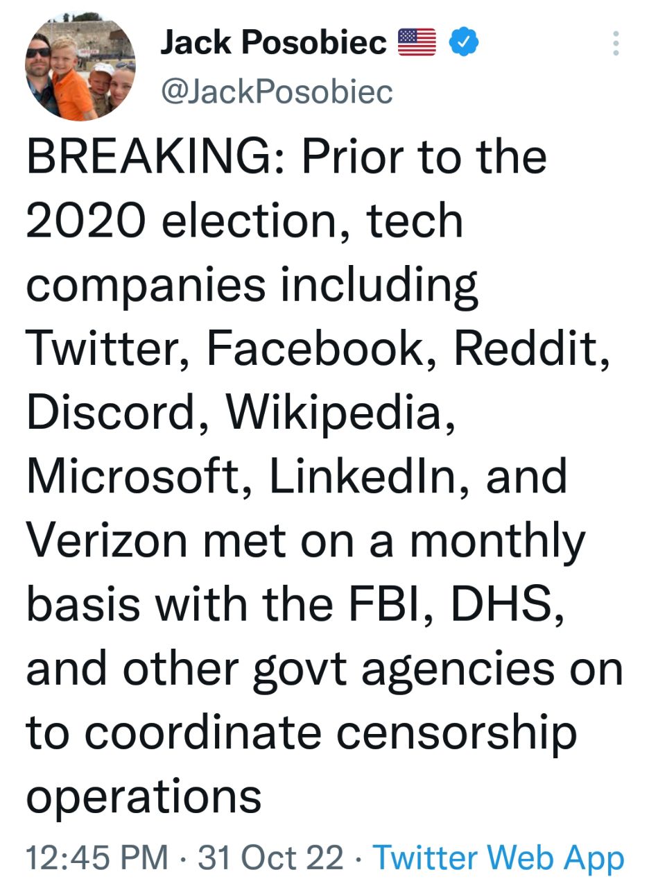 OH NOTHING! Just a casual conversation between the DHS and Twitter talking about how platforms need to work with the Federal government to censor American citizens.