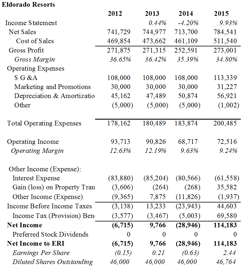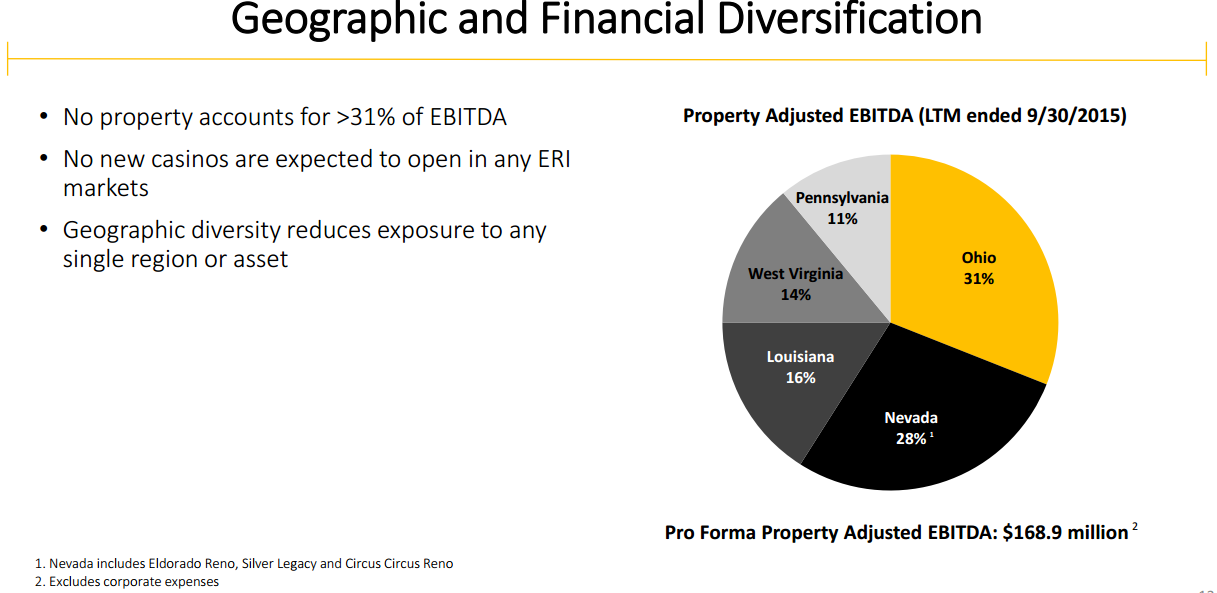 [h=2]Management:[/h]Eldorado Resorts' management team is highly experienced, currently having an average of +30 years of industry experience. They have been able to identify and execute a $10 million cost savings plan, which started in the second quarter of 2015, and $5 million of which will be saved in the first two quarters of 2016.