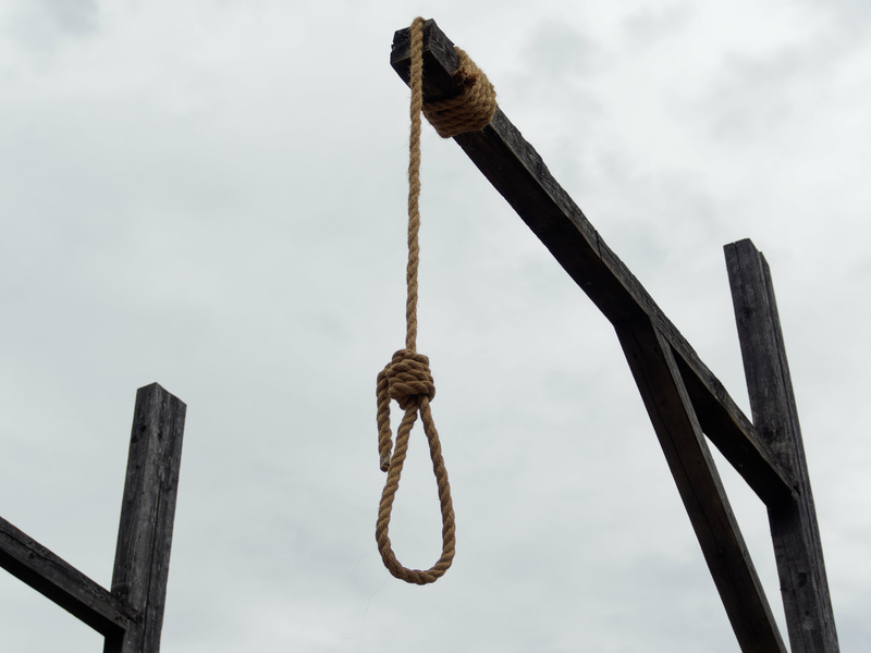 A minute later, the hangman standing alongside Robinson was placing a gag across his mouth and a black sack over his head. Handcuffed behind his back, Robinson uttered guttural gurgling sounds as the hangman lowered the noose, secured it around Robinson’s neck, and checked the rope’s tautness.