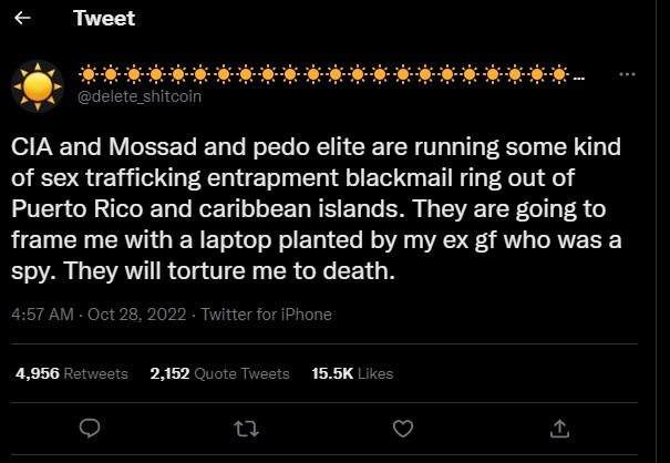 so a crypto dude tweets this out on 10/28/22 then goes dead the same week. Did Epstein Island close or just move to Puerto Rico?