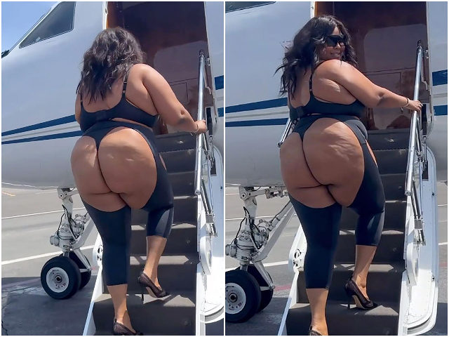 Pop star, Joe Biden Presidential campaign surrogate, and climate change hardliner Lizzo posed in a tiny thong, showing off her buttocks while boarding another private jet on Sunday.