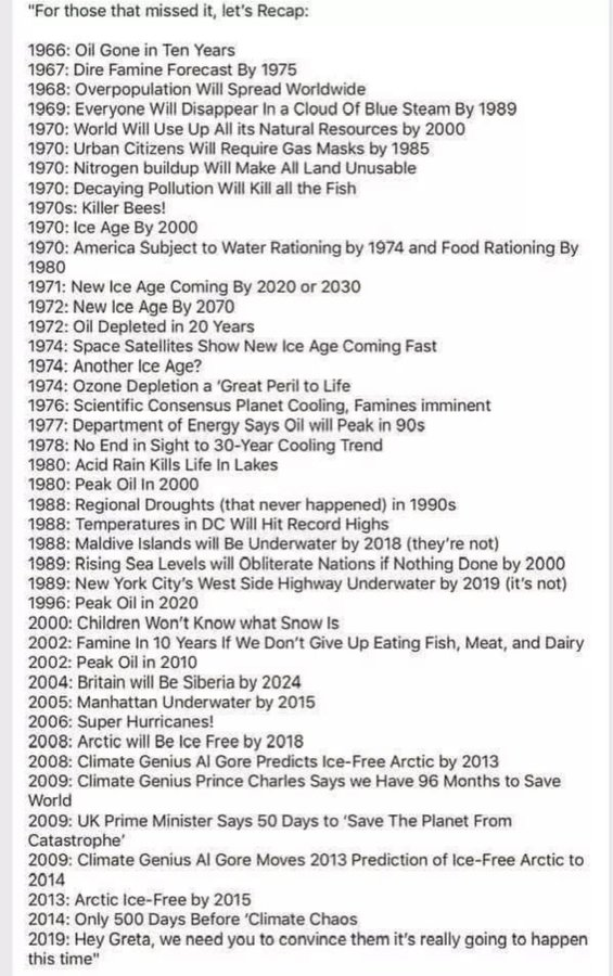 One of my favorites; after Katrina and the awful hurricane season of 2005 when 7 hit the USA, Algore said because of Bush policies, this is the new norm. We went on to have 4 hurricanes make landfall over the next ten years.