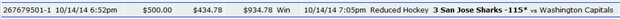 i hit the sharks game but never posted the play on here so im not going to count it on my totals