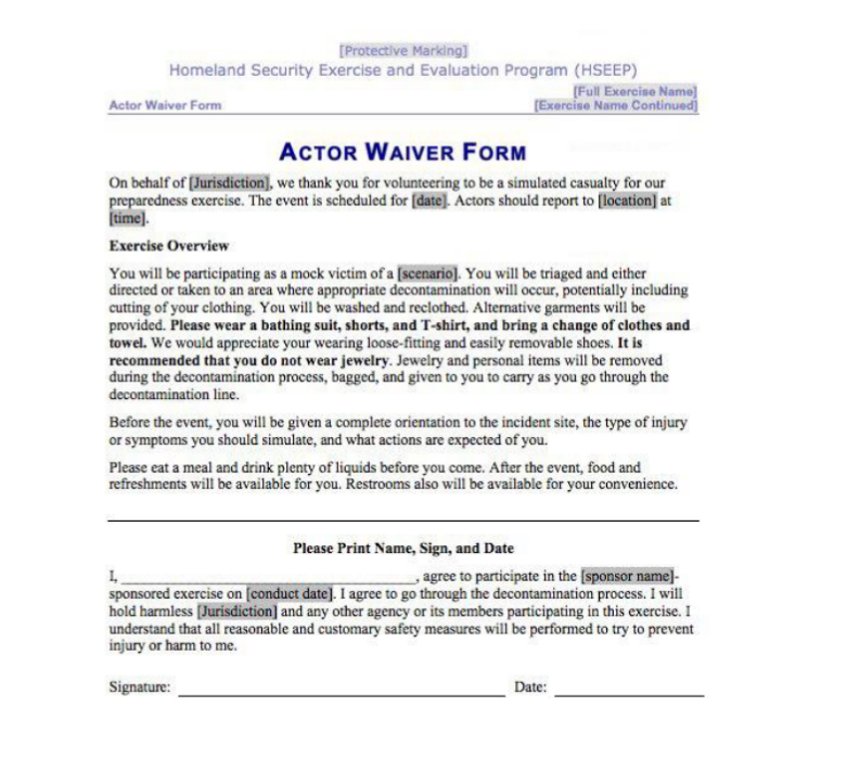 Standard template that crisis actors have to sign before participating in field drills which are held in some shape of fashing ALL the time....makes sense to help train first responders and such.......very much like signing up to play an extra in a Hollywood movie.