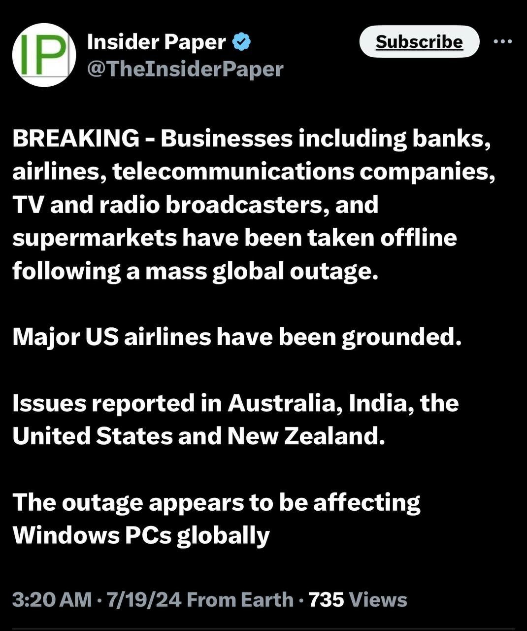 Q is implying that CrowdStrike manipulates source, can do foreign intercepts, tracee 'break-in' routes, bulk data connection & frame an intended target as the intruder by inserting/layering code. What were they trying to do that could have caused this outage?