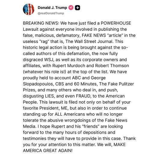 Trump can't sue anyone either, that will force the DOJ to turn over all Epstein files and Trump would have to testify in court.