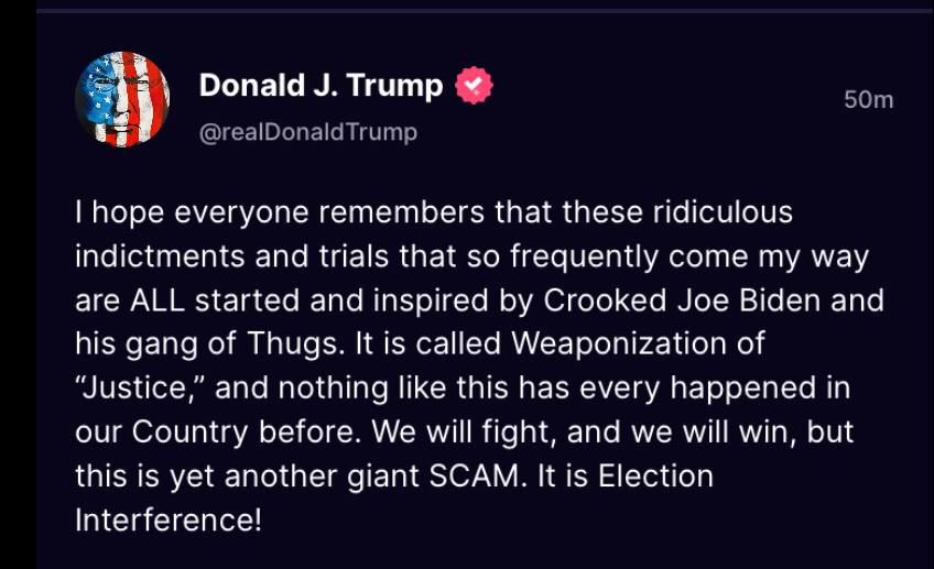 The last I heard someone who has been indicted four times already and has 91 indictments facing him and most importantly