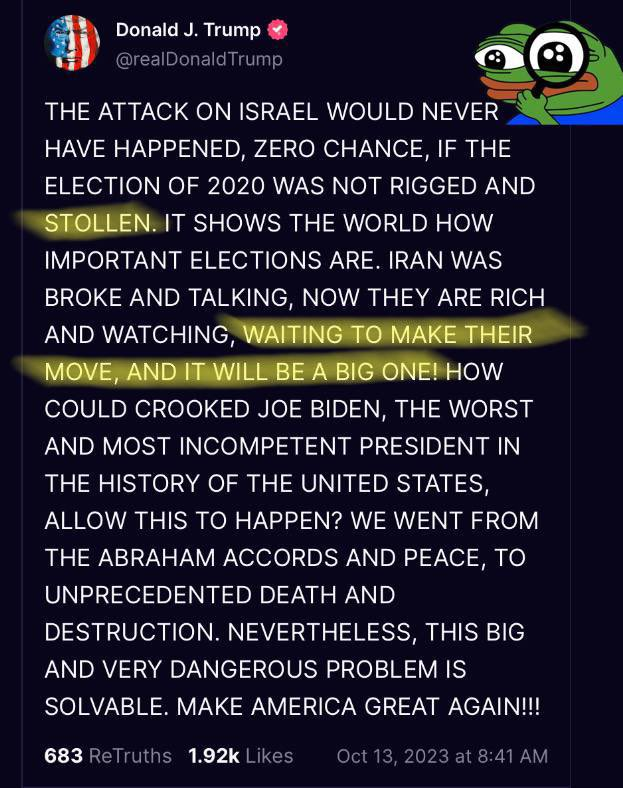"I'm the only candidate who can prevent WWIII" - CIC Trump