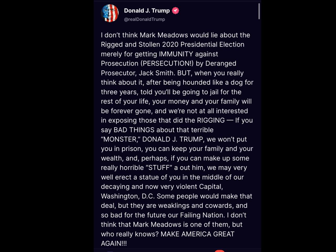 Believing anything that a PROVEN PATHOLOGICAL liar like Trump says is akin to someone saying that Hamas in reality loves Jewish"... if you can make up some really horrible 'STUFF' a out him..."