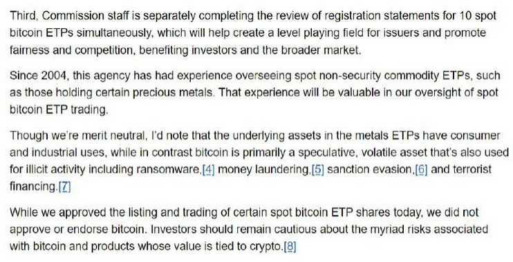 The SEC's remarks are GREAT NEWS for BTC holders.