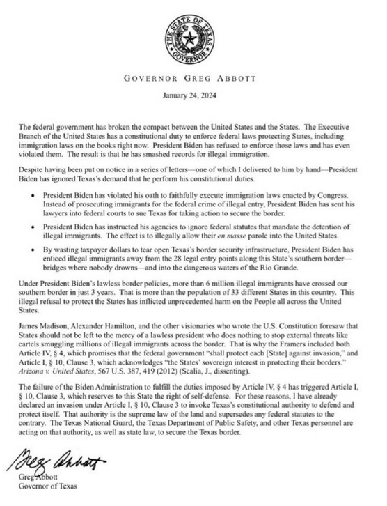 👉 BREAKING: Texas Gov. Greg Abbott releases statement outlining states' rights to constitutional self-defense when dealing with a "lawless president"