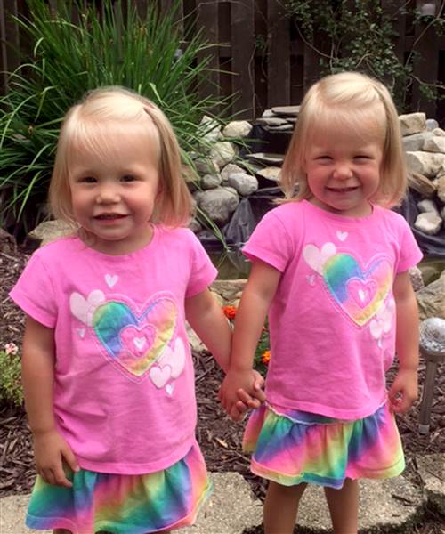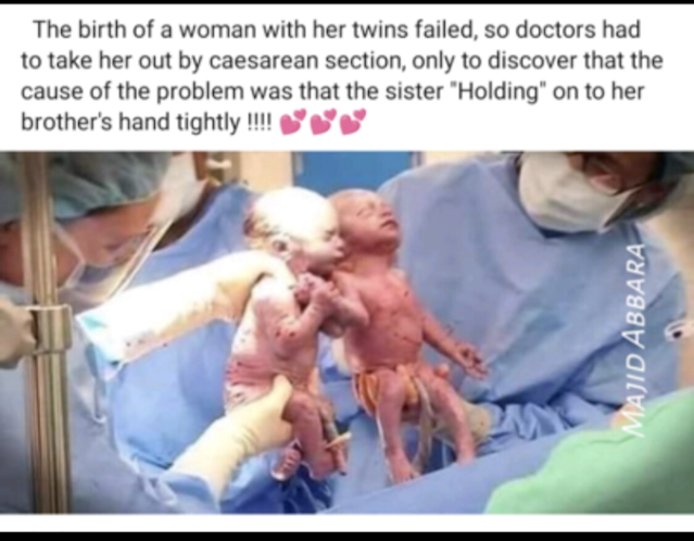 The first pic says "her brother's hand" but they are actually two girls. The second pic shows them two years later.