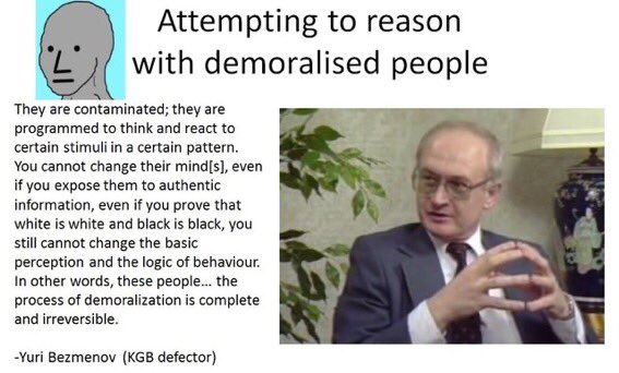 Their programming is so deep and so pervasive, they're like Manchurian candidates. Completely unaware of their own brainwashing.