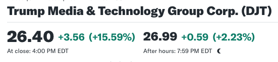 Hows the "God driven " stock opportunity (DJT) working out these days