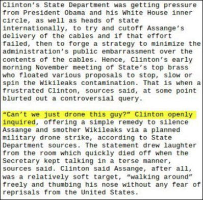 A message from Hillary Clinton's email addressed to a number of military officers requested different ways to stop Julian Assange.