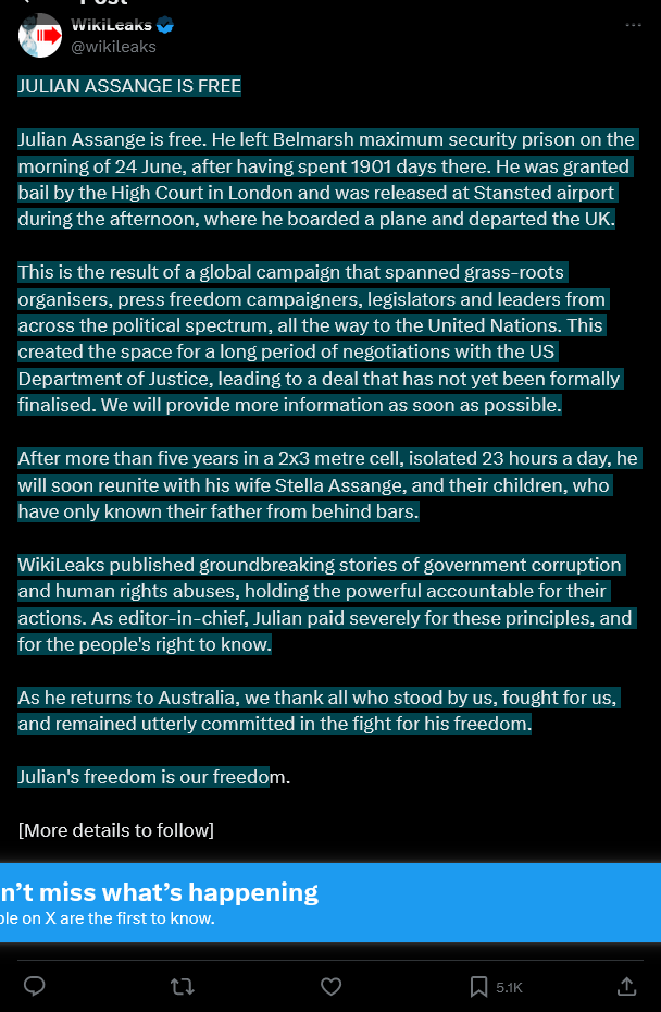 ๐Ÿ’ฅ ๐Ÿ’ฅ ๐Ÿ’ฅ JULIAN ASSANGE HAS BEEN FREED ๐Ÿ’ฅ๐Ÿ’ฅ๐Ÿ’ฅ