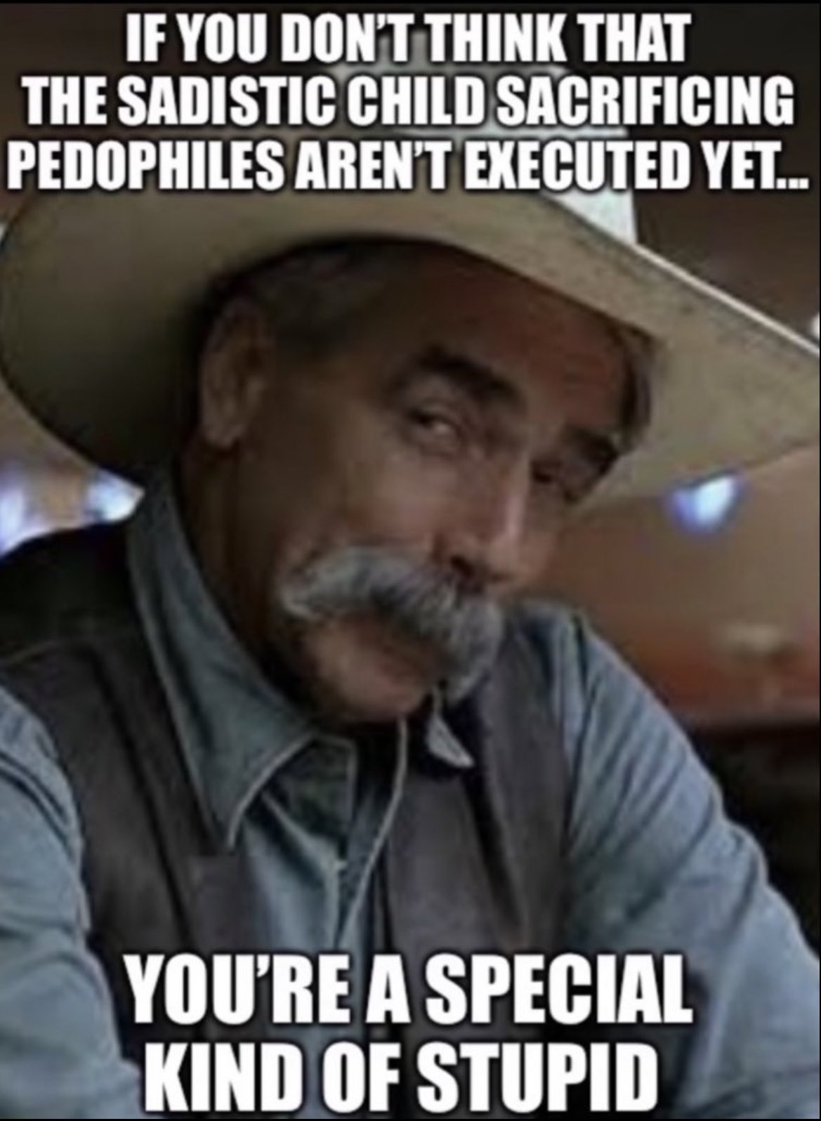 Psychopaths of varying degrees often manifest this weird impulse to cryptically and mischievously signal -- to both victims and co-conspirators -- the evil that they have done or are about to do. This is especially common -- perhaps even required -- for child torturing Satanists and snuff porn aficionados. As both Qand Trump have posted or stated many -- and I do mean many -- times: "These people are sick."