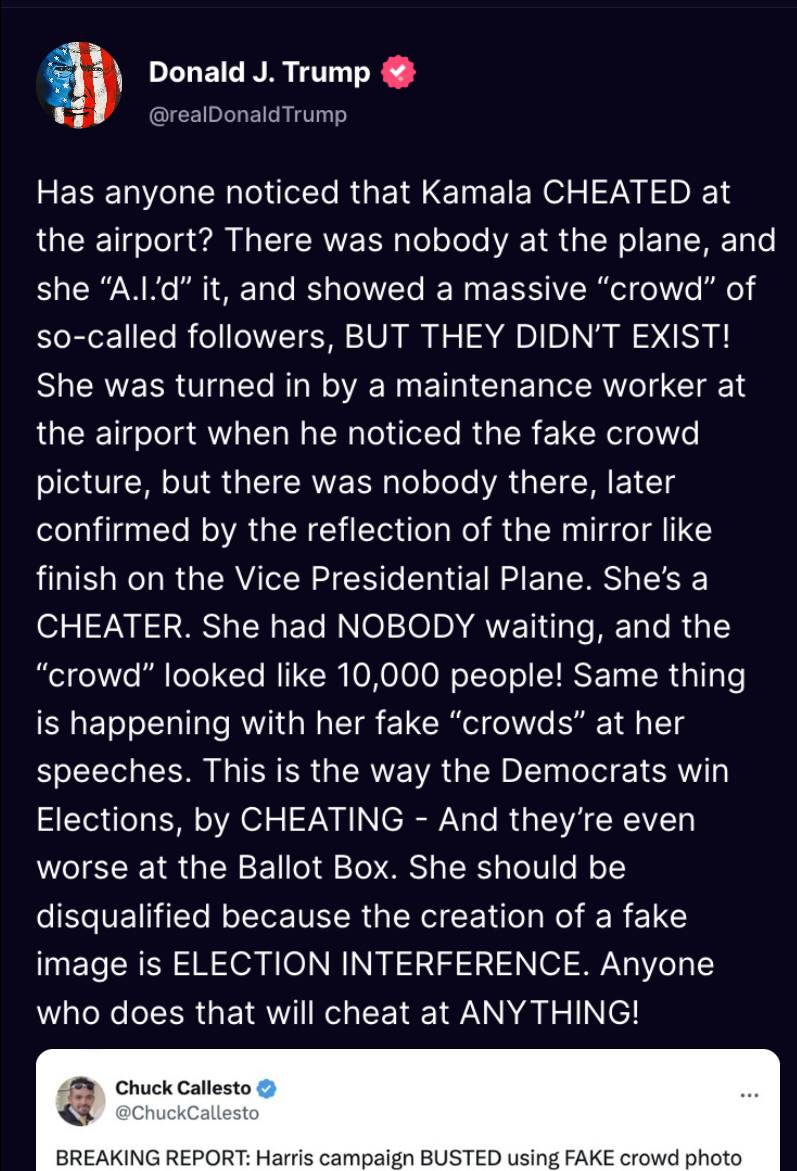 Look normies! 15 minutes dinking around with a laptop and - presto! - thousands of people cheering on "Kamala" 👉 CGI! Imagine what can be done by the Deep State with billions of dollars of the most advanced technology on God's Green Earth 👉 Expand your thinking!