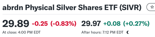 SIVR +71% from cost 17.50 as a cash alternative.