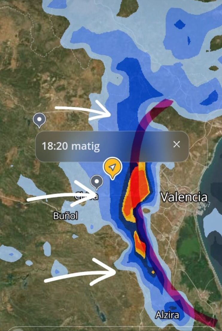 "absolutely HAARP! This cloud came from nowhere, middle of night, then stayed static for hours, strategic above city (higher ground where we are) so that all water would end up in the city like a big lake. At the same time Valencia was Sevilla, Granada, Murcia, only the big cities, all turned to lakes. Strategic attack no doubt."