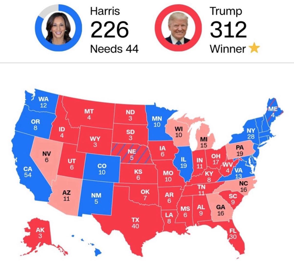 Notice how many votes in 2020 81milly to 74 milly vs 2024 71milly to 66 milly.....aint no way that may fewer people voted this year (even if we add a few million that will trickle in later).....there were millions of excess "votes" caused by the machines last time as the algorithms tried to balance out .....( get it, it doesnt matter if I give you an additional "vote" that wasnt real because im getting 1.1x that amount anyway)