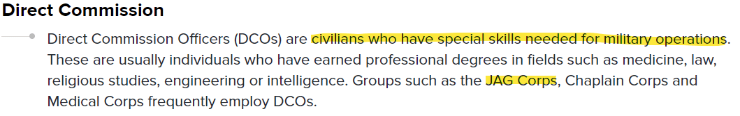 Civilians can be direct-commissioned into the military when their skills are critical to sustaining military operations.