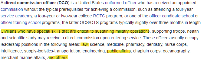 More specifically, is it possible they have been Direct Commissioned into our military while carrying out their roles?