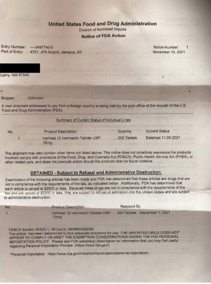 THE FDA IS DETAINING IVERMECTIN IMPORTS