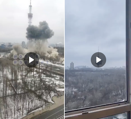 NOW - Russia strikes at TV tower in Kyiv. Ukrainian TV channels reportedly stopped broadcasting several minutes ago.