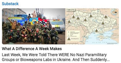 It was just last week that fake president and his fake administration, fake news and fake fact-checkers all tried to convince the world that everything [biolabs, nazis, etc] being said about Ukraine was just conspiracy.