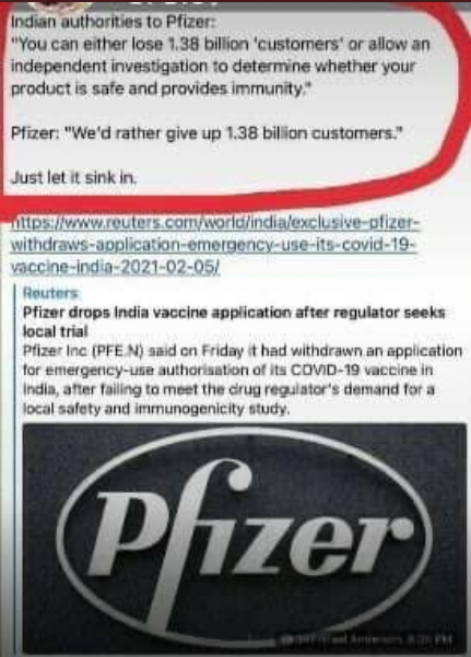 ? PFIZER SAYS IT WOULD RATHER LOSE 1.38 BILLION CUSTOMERS THAN PROVE ITS VAXX IS SAFE & PROVIDES IMMUNITY ?