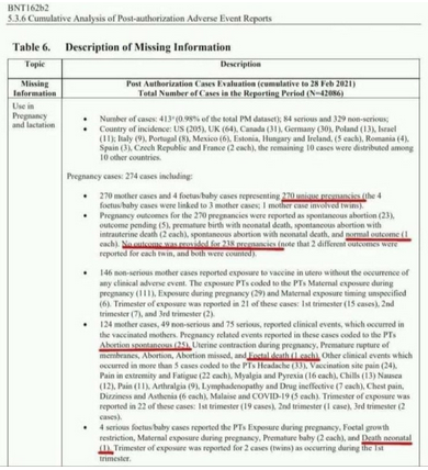 BREAKING: Pfizer data dump shows 270 pregnant women were tested and 238 went AWOL. Of the 32 remaining only 1 live birth. Others are various cases of spontaneous abortion and fetal death.