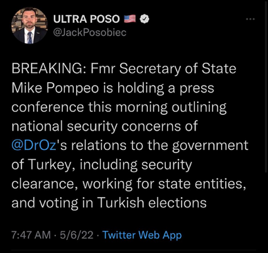 At a “Save America” rally in Ohio on Sunday, Mr Trump said: “You know, we’ve endorsed Dr. Oz. We’ve endorsed—J.P., right? JD Mandel, and he’s doing great. They’re all doing good.”