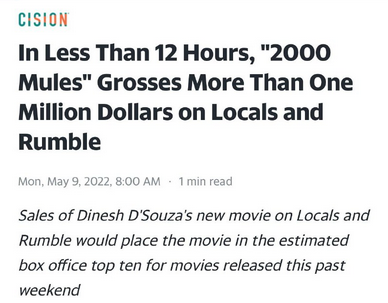 It was then forced onto “alternative” platforms like Rumble & Locals, yet it still grossed over $1 million online within 12 hours.