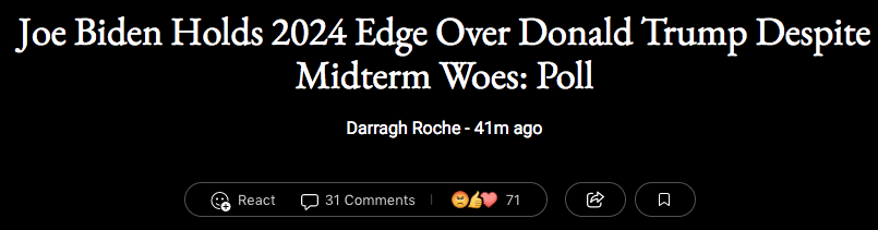And just think-the country is in awful shape and folks still give the edge to Biden.HERE'S A GREAT FAKE POLL FOR THE TARDS TO JERK OFF TOO