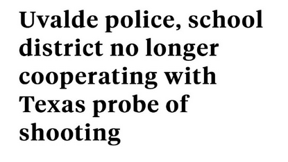 ABC NEWS - The Uvalde Police Department and the Uvalde Independent School District police force are no longer cooperating with the Texas Department of Public Safety's investigation into the massacre at Robb Elementary School and the state's review of the law enforcement response, multiple law enforcement sources tell ABC News.