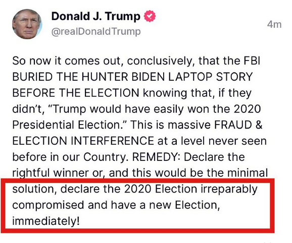President Trump now telling you we need a new election immediately.
