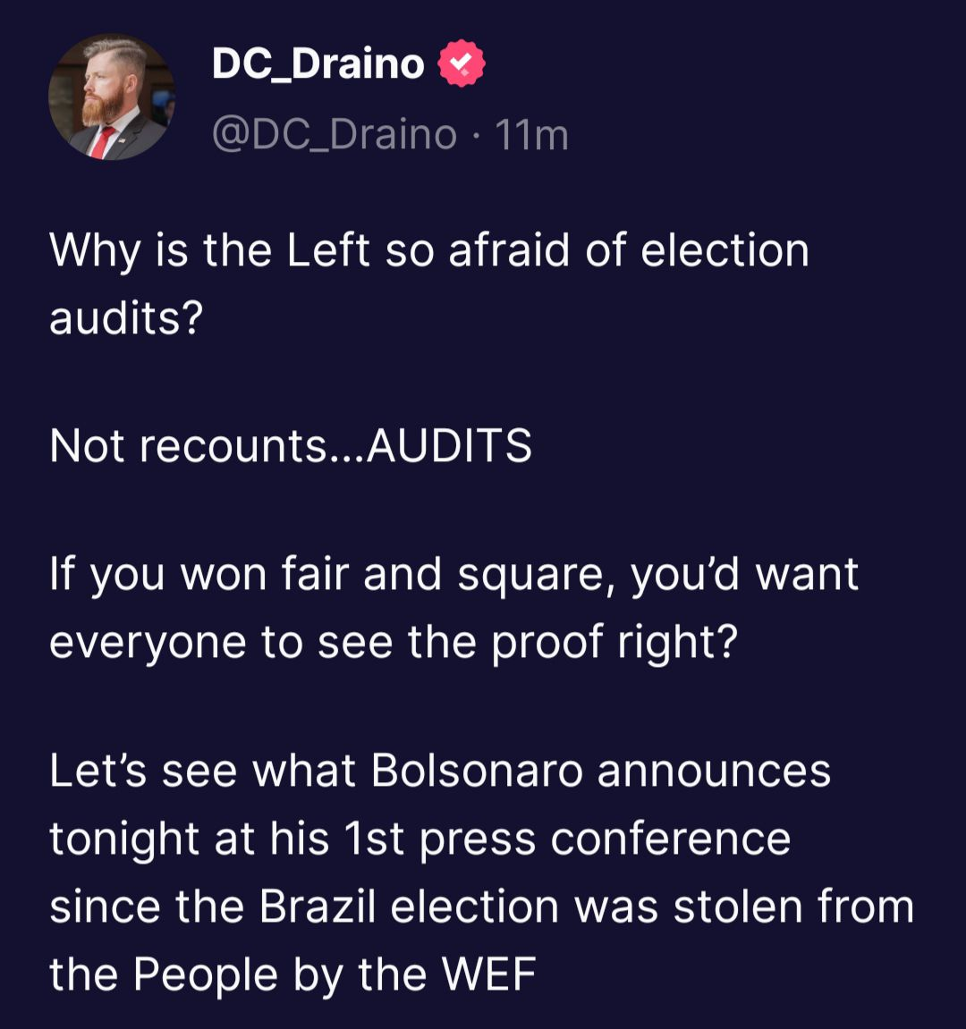 ?BREAKING: Brazilian President Plans Presser Tonight – Will Announce Military Audit of Controversial Election, May Arrest Criminal Judges
