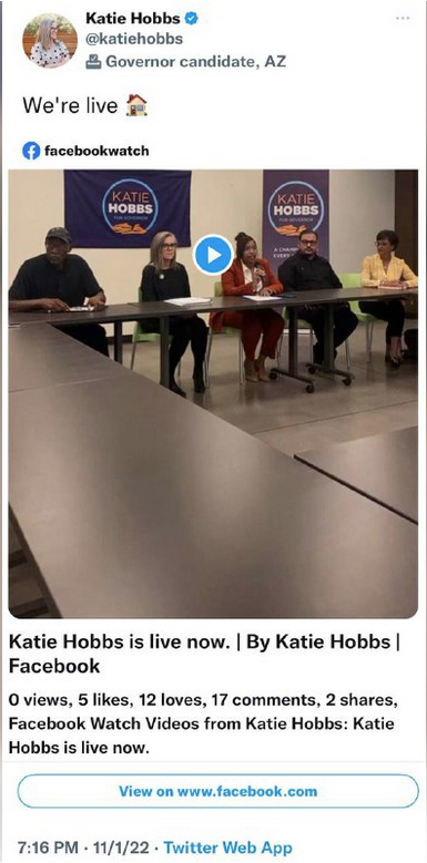KATIE HOBBS WENT LIVE ON FB AT 5PM YESTERDAY