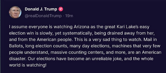 ? Kash Patel: “Whyare they [Arizona] so afraid of announcing a result on Election Day?”