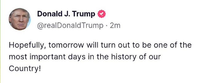 There is supposed to be a big announcement or message from Trump on Tuesday